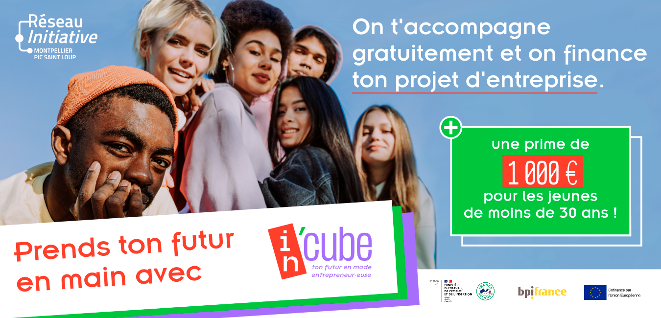 As-tu déjà pensé à devenir entrepreneur ? Créer son entreprise, c’est une aventure professionnelle riche, pleine de challenges et extrêmement formatrice. Mais quand on est tout seul, la marche peut sembler trop haute à franchir. C’est pourquoi le réseau Initiative France lance In’cube : un programme d’accompagnement renforcé gratuit et spécialement conçu pour toi, futur créateur ou créatrice d’entreprise, selon tes besoins et l’état de ton projet. Et, pour les moins de 30 ans, une prime de 1 000€ pour t'aider à démarrer !